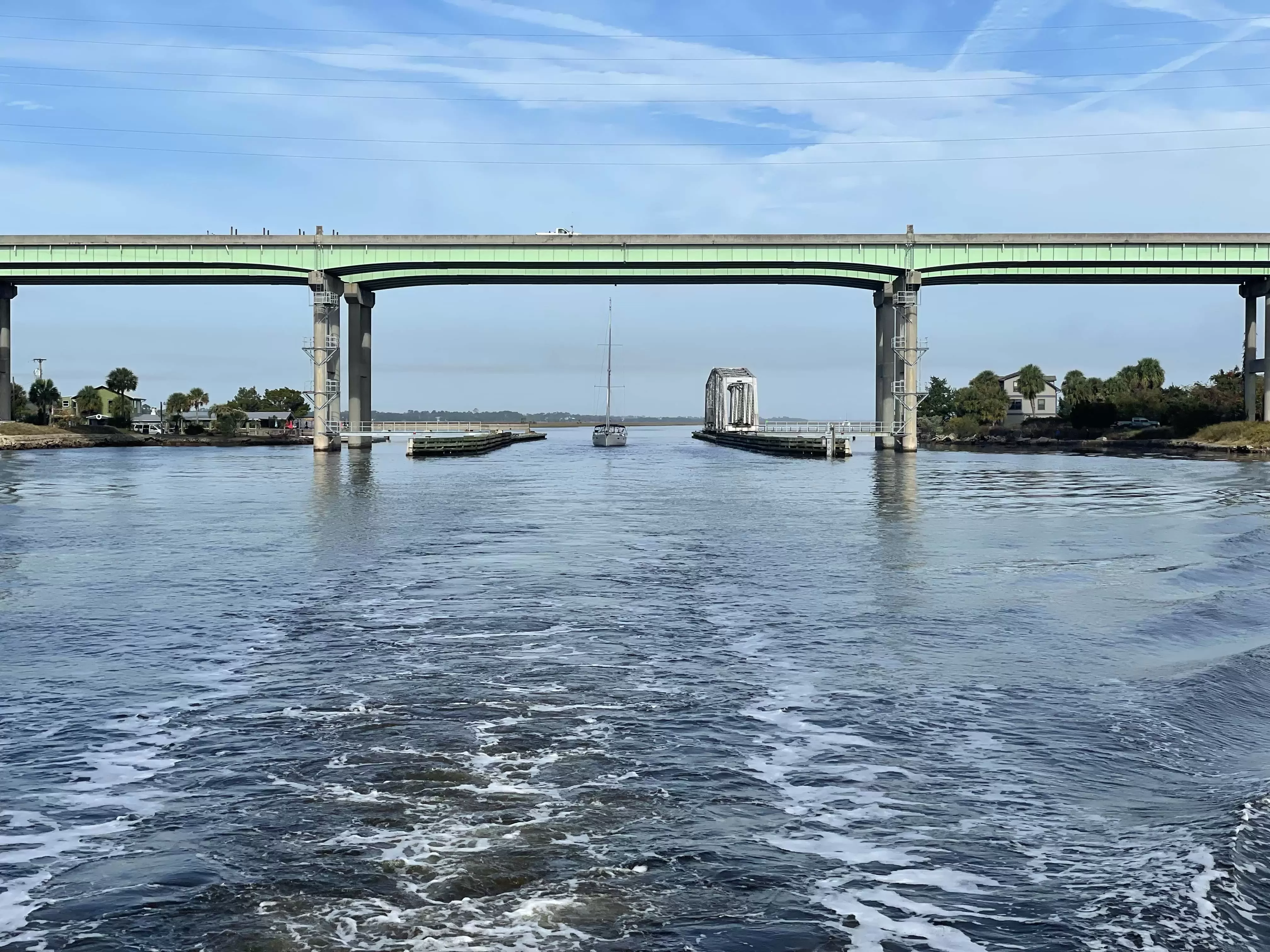 Draft: 5.0'Once you pass through the bridge the depths increase dramatically. We saw 30' going Northbound