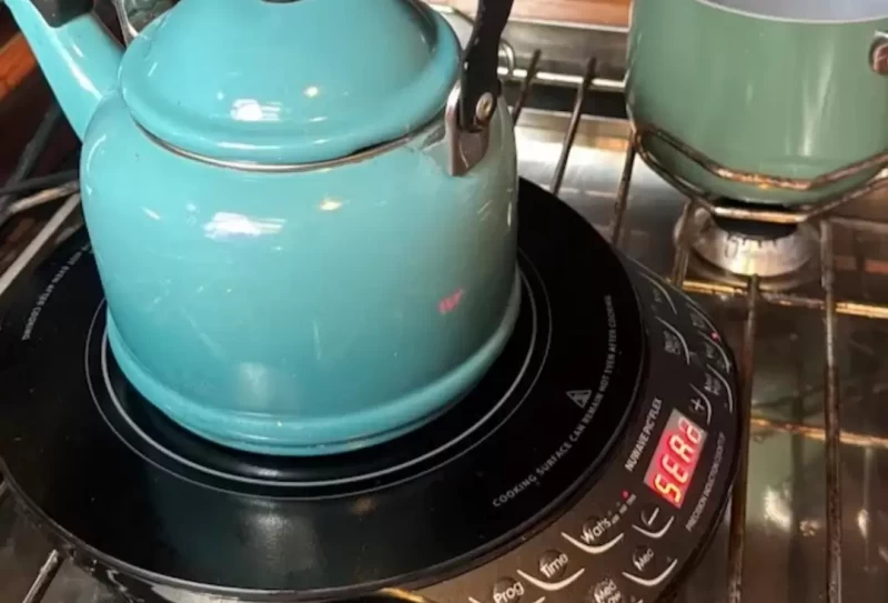 By getting an enameled kettle to use with the induction cooktop, I could ditch my electric kettle. I used that kettle for years; it was one of my most used boat appliances until the induction hot plate arrived. So, if you're looking for a quick and easy way to reduce your propane use, an electric kettle is a big help--that is if you drink as much tea and coffee as we do!