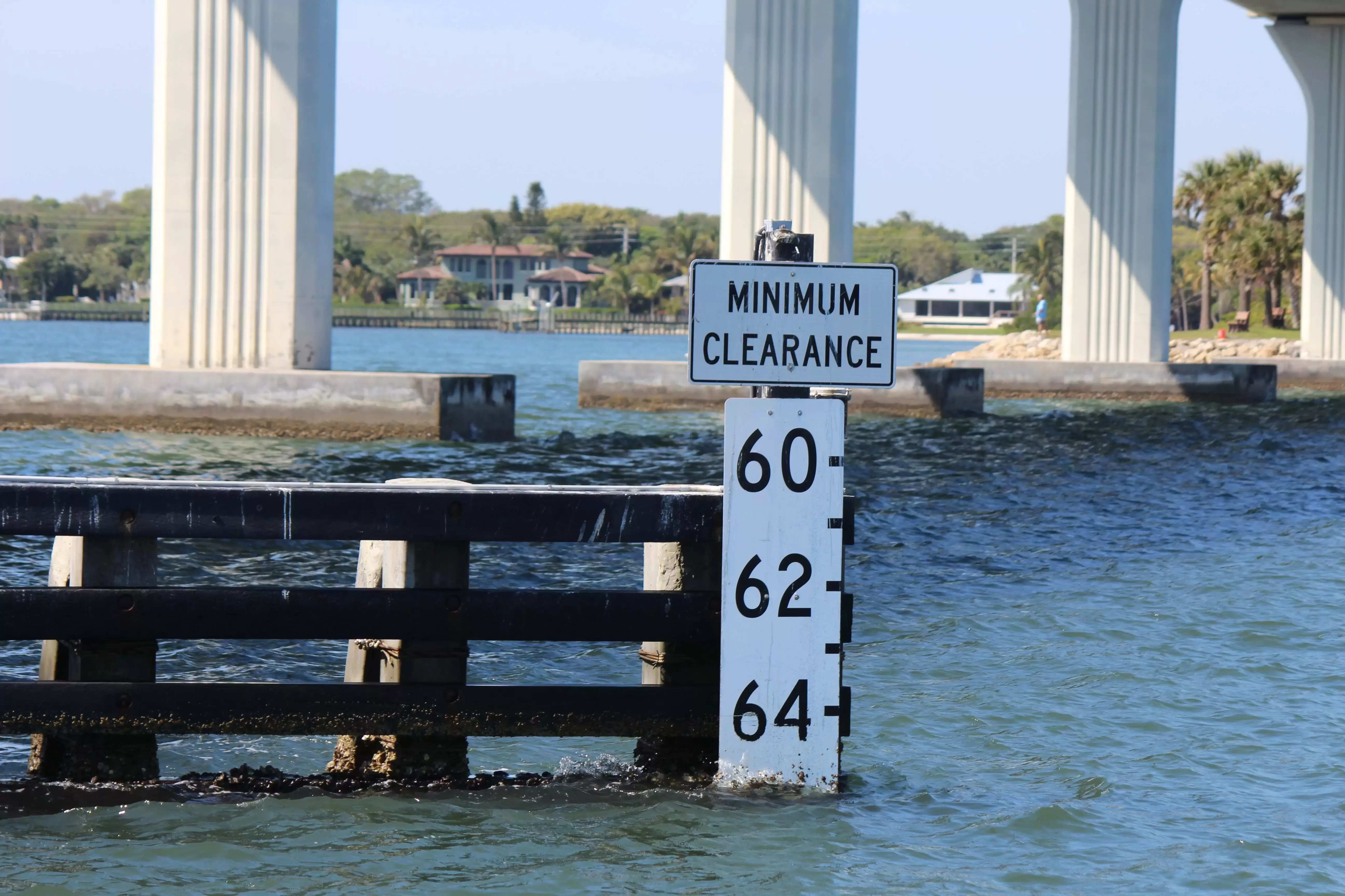 Draft: 3.5'On December 14, 2020 heading south our tide board showed 64.3" On the northside the tide board showed 64 even. Tide was at 1.3. We cleared with our mast height just under 64.