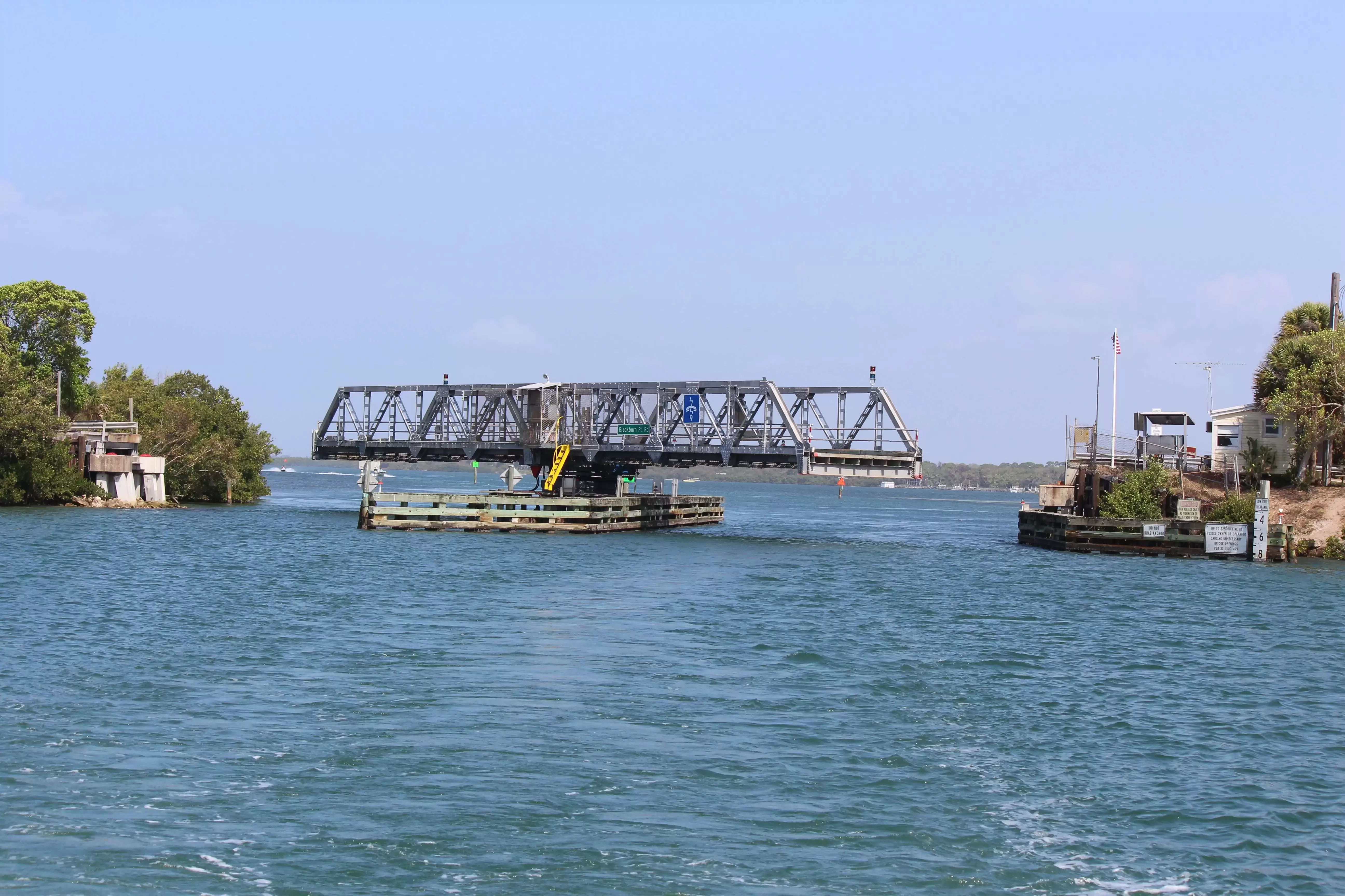 Draft: 5.0'Blackburn Point Bridge opened on demand for us on first call. It’s an interesting little swing bridge in the middle of no where. The bridge tender has to walk out to the middle to turn bridge to open it. One of my favorites on the west coast of Florida, with the exception of the new 65’ ICW bridges that you do to have to wait for of course.